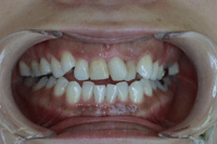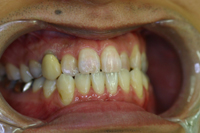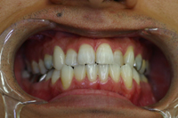 ラミネートベニアは、歯の表面を 0.5ミリくらい削りその上に薄いセラミックを、付け爪のように張り付けてしまう方法です。適応症としては、歯が黒ずんでいたり、前歯にすき間が空いている場合です。このような場合にはホワイトニングでは、効果が期待できません。また、同時に歯の形も美しく変えられます。2,3回の通院で仕上がります。