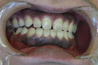黒ずんだ歯茎を健康的な色に戻すメラニン色素除去の治療です。 特殊な薬剤を使用してタバコなどで黒ずんだ歯ぐきを元のピンク色の歯ぐきに戻します。 歯茎の色が悪くなる原因としては、歯の治療に使われている金属による金属アレルギーでメラニン細胞が増えて悪くなる場合や、さし歯が合わず炎症を起こしていたり、歯周病による血行障害などが考えられます。それらの原因を取り除いても歯ぐきの色が変わらない場合は、レーザーでメラニン細胞だけを取り除きます。