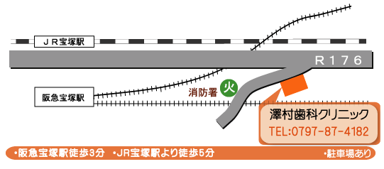 | 当院は阪急宝塚駅より徒歩 3分です。黄色の看板が目印です。 |
